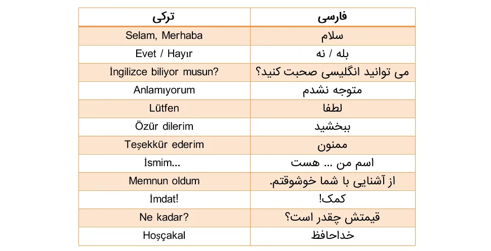 و در آخر چندتا از عبارت های ضروری زبان ترکی استانبولی را در اینجا آوردیم تا با دانستن معنی این عبارات، سفر خوب و راحتی را به شهر استانبول داشته باشید.