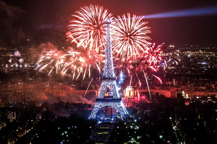 ١٤ژوییه، روز ملی فرانسه است. به همین مناسبت، در شب ١٣ ژوییه در ایستگاههای آتشنشانی سراسر شهر، رقصهایی توسط نیروهای آتشنشانی پاریس انجام میگیرد. ساعت ١٠ صبح روز ١٤ ژوییه، نیروهای ارتش و آتشنشانی با هواپیما و هلیکوپتر در خیابان شانزهلیزه رژه میروند. حدود ساعت ١١ شب، مراسم آتشبازی بزرگی در میدان مارس برگزار میشود. رژههای رنگارنگ در خیابان شانزهلیزه و آتشبازیهای میدان مارس در این روز دیدنیاند.