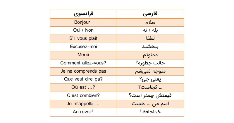و در آخر چندتا از عبارت های ضروری زبان فرانسوی را در اینجا آوردیم تا با دانستن معنی این عبارات، سفر خوب و راحتی را به شهر پاریس داشته باشید.