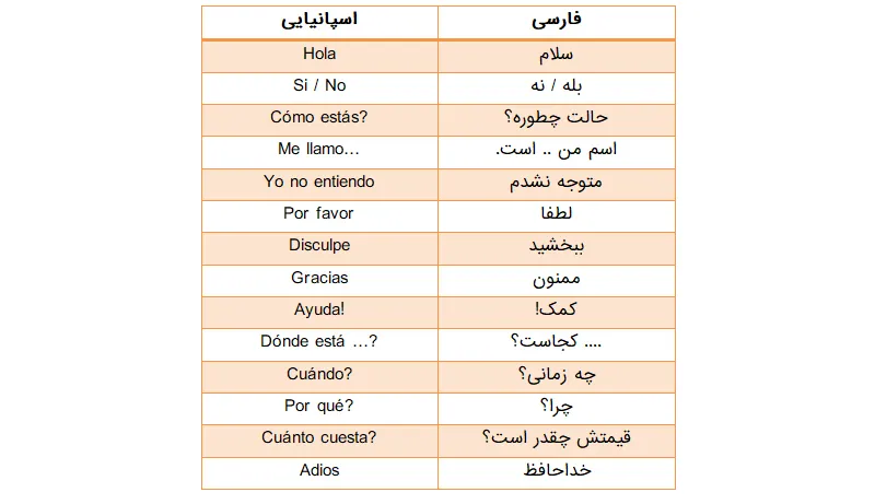 و در آخر چندتا از عبارت های ضروری زبان اسپانیایی را در اینجا آوردیم تا با دانستن معنی این عبارات، سفر خوب و راحتی را به شهر بارسلونا داشته باشید.