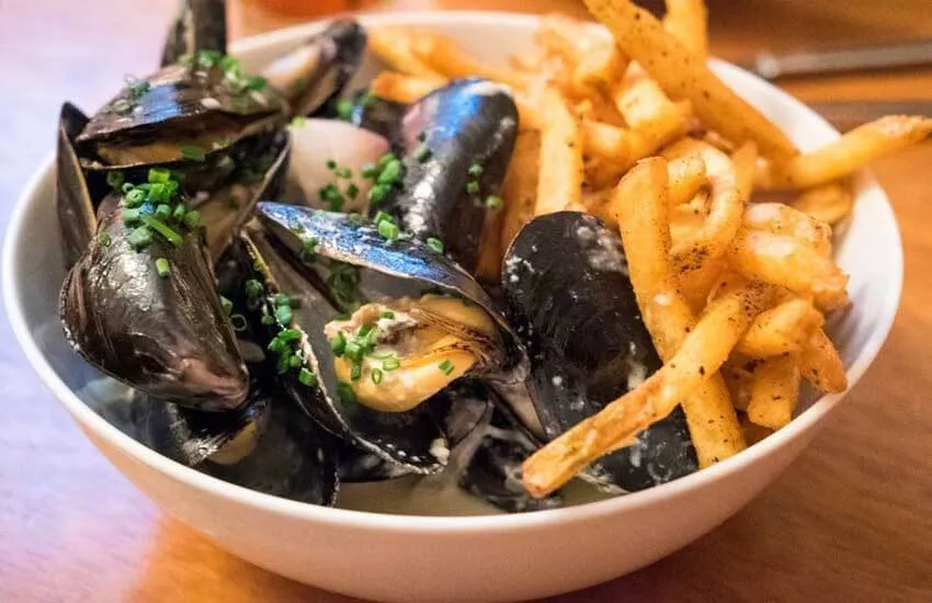 صدف یا مول فریت غذایی ساده، سریع و فست فودی است و آن را به عنوان پیش غذا، میان وعده یا اسنک می توان میل کرد. گوشت صدف را با سیر، موسیر، جعفری و کمی خامه و کره مزه دار می کنند و همراه با نان تست فرانسوی و حجم زیاد و رضایت بخشی از سیب زمینی سرخ کرده سرو می کنند.