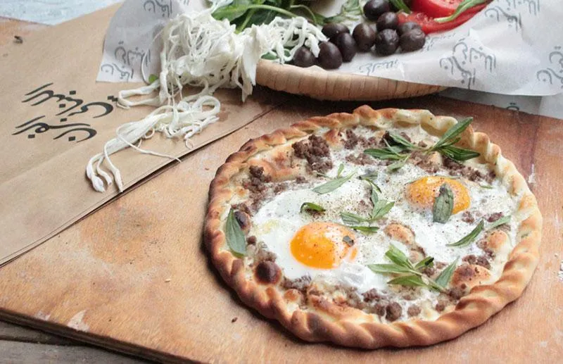 یکی از انواع منوشه با پنیر خامهای شور و مربای شیرین و تخممرغ و گوشت بره ریزریز شده است که حتماً باید آن را امتحان کنید.